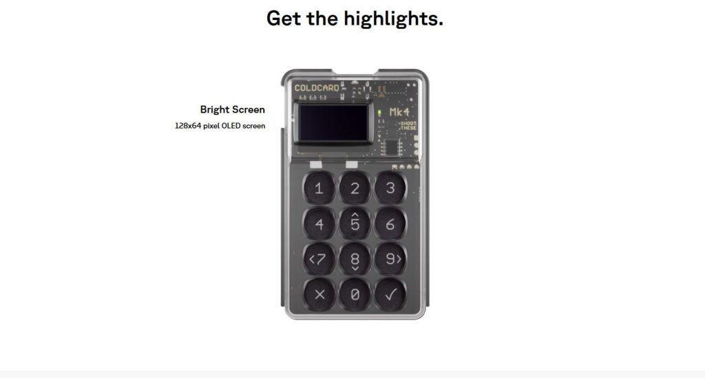 • Coldcard Mk4: Dirigida a usuarios más experimentados, esta billetera es ideal para quienes utilizan el sistema multisig. Coldcard Mk4 prioriza la seguridad y es especialmente popular entre la comunidad de bitcoiners por su diseño orientado a la protección de fondos.